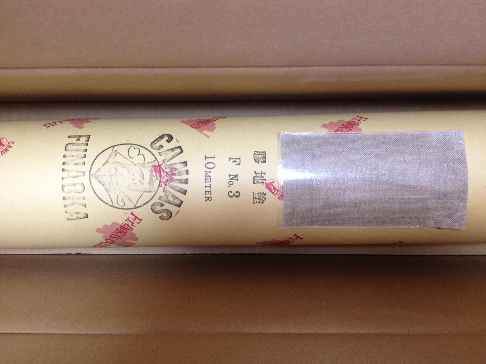 フナオカの兔膠塗りの麻ロールキャンバス(2m幅・長さ10m)です。